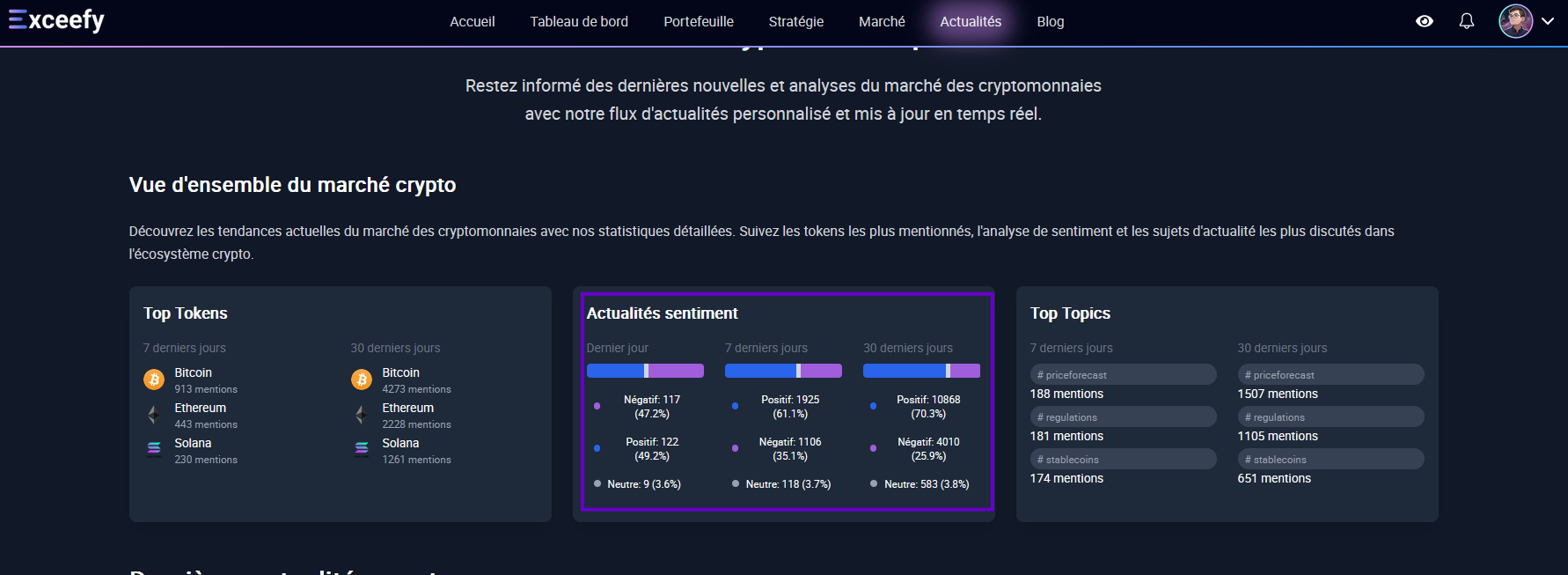 💡 Cela vous permet d’avoir rapidement une vue d’ensemble de l’humeur du marché sans devoir analyser chaque source une par une.