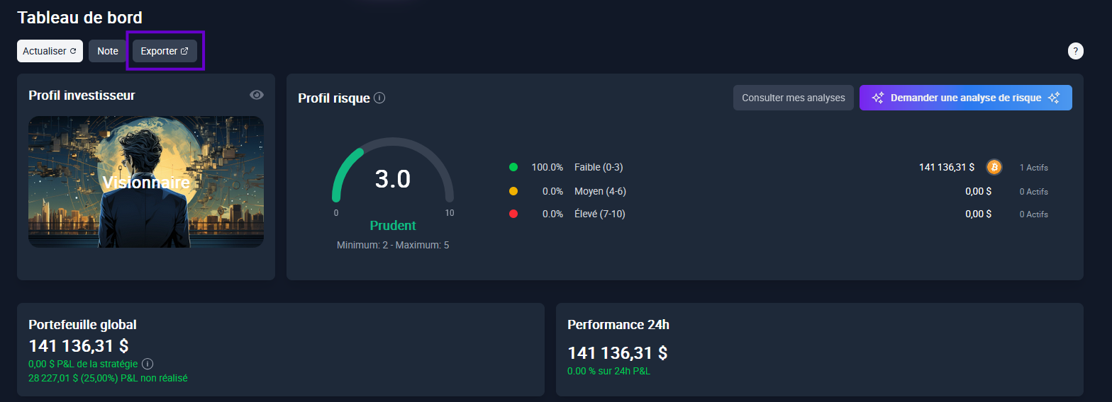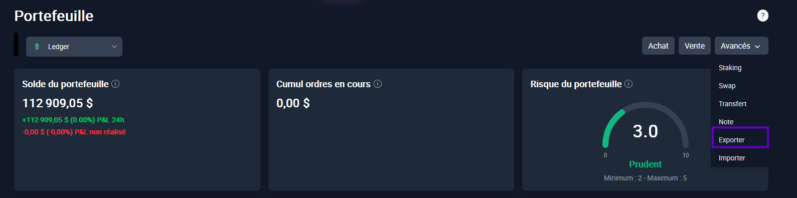 Sur Exceefy, vous avez plusieurs options pour exporter vos données, que ce soit tous vos portefeuilles confondus ou un portefeuille spécifique.