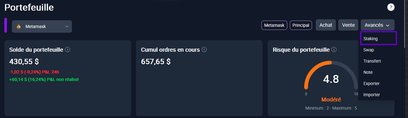 Pour gérer vos gains de stacking :