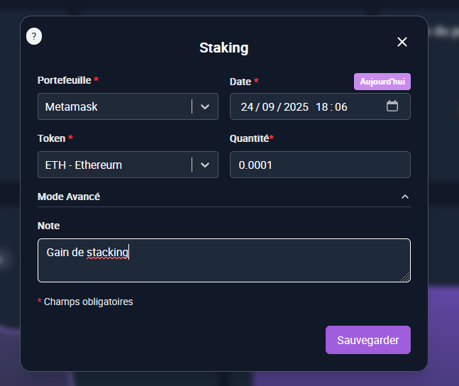 Enregistrez facilement vos gains de stacking dans Exceefy.